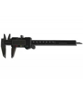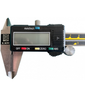 Digital caliper in hardened stainless steel.5 figure liquid crystal display and minus sign. mm/inch conversion.Set to zero in any position.Proximity output to printer port.Slider locking screw.Battery powered....
