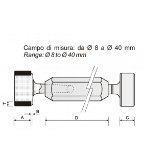 Smooth reversible carbide plugs. Measurement range: Ø1 - Ø8 mm.Aluminium handle (with brass fittings to fix the contacts)"L" PASS side length: 25 mm
