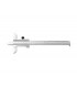 Depth measuring monoblock caliper in hardened stainless steel. Satin-chromed readout scale. Etched, precision graduation, easy to read and long-lasting. Raised slider for easy movement. Slider locking screw. Double function: depth measurement and with foot for checking internal grooves. Serial number. Manufactured as per DIN 862. Supplied in case.