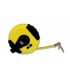 Rotella metrica, carcassa in ABS gommata, nastro in acciaio smaltato, lettura lucida, gancio con doppio rinforzo, rientro a manovella.